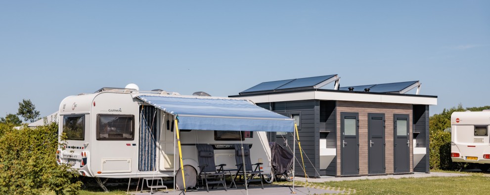 Onze Luxe Comfort plaatsen zijn ruim, 110m² en beschikken over een eigen sanitair unit op de plaats. De sanitair unit is ingericht met een eigen douche, wastafel, apart toilet en een overdekte afwasplaats . Zo kunt u genieten van extra luxe op uw eigen plaats. Daarnaast is de kampeerplaats helemaal compleet met 12 Ampère electra, gratis Wifi mogelijkheden, CAI aansluiting (digitaal), wateraansluiting en waterafvoer.